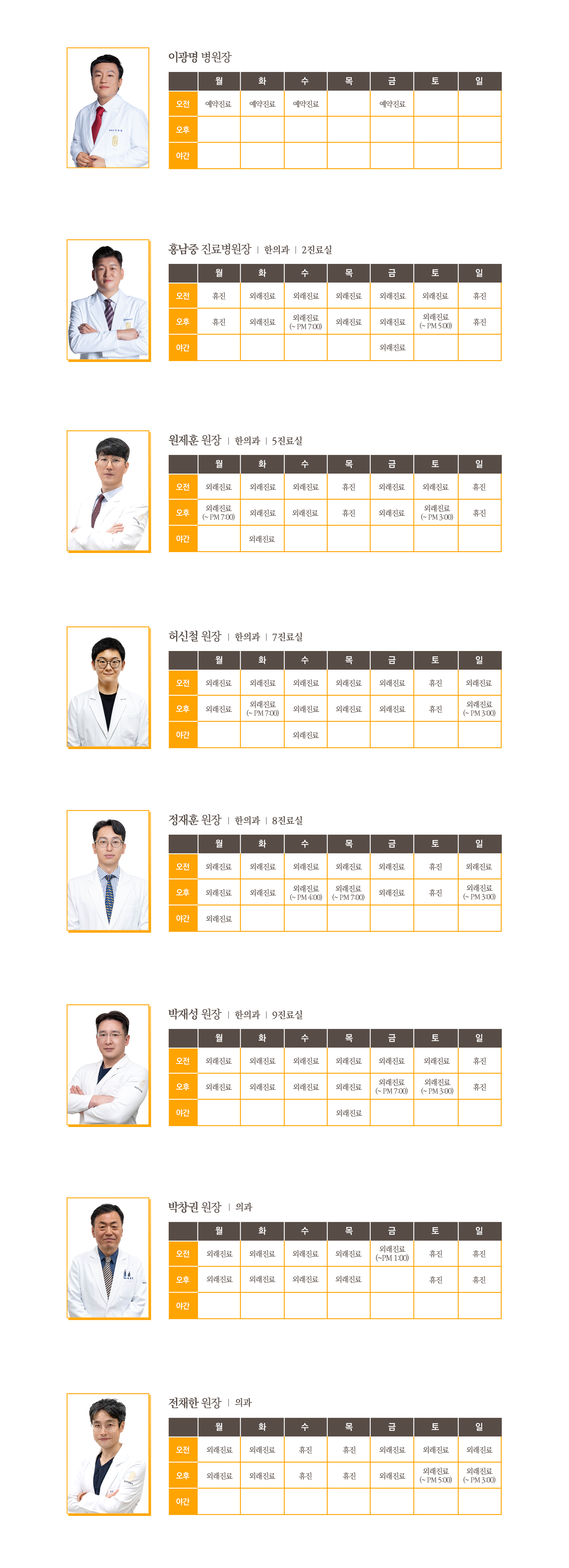 광명한방병원 의료진 시간표